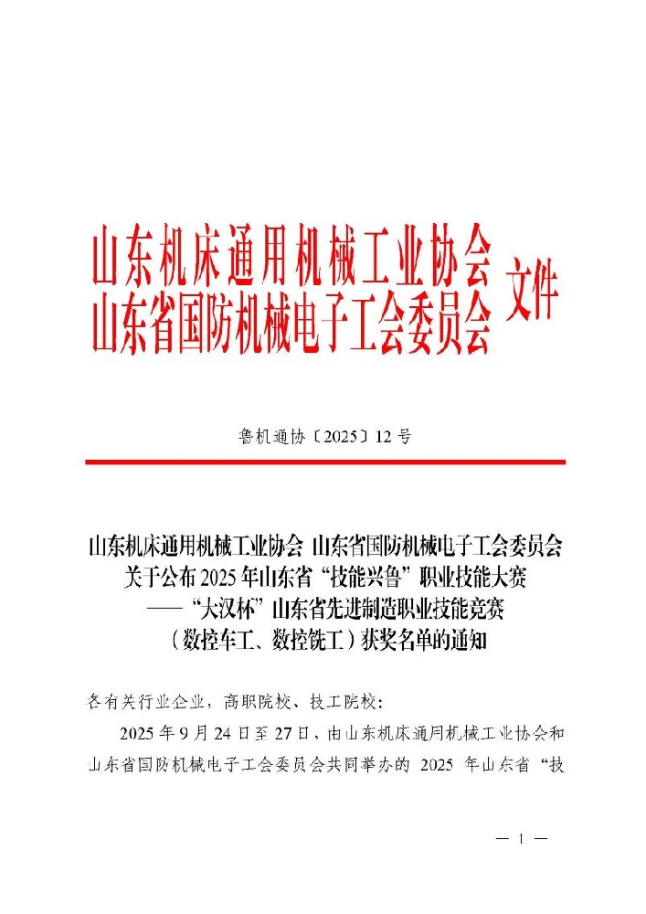 山東省先進制造職業(yè)技能競賽(數控車工、數控銑工)獲獎通知.p···…